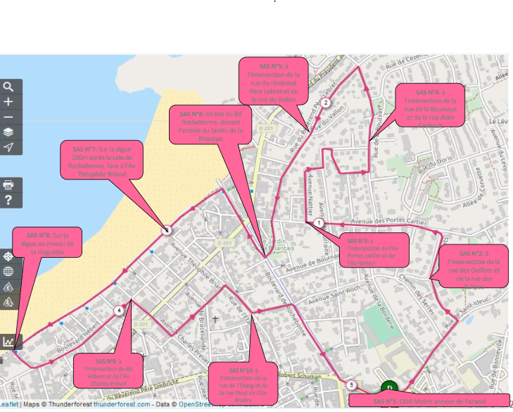 • Lieu d'arrivée : bas du Bd Rochebonne, devant l’entrée du Jardin de la Briantais