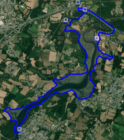 Il est difficile de se tromper sur ce parcours, en tout cas de couper ! il faut être toujours au plus près de l'eau, vous pouvez partir d'où vous voulez sur le tour, tant que vous bouclez la boucle réelle , selon vos convenances, mais dans le sens inverse des aiguilles d'une montre ( sens Plougoumelen Pluneret Le Bono Plougoumelen) ! Par exemple moi je pars de la Crêperie de Keroyal, au plus près de la 4 voies, pratique, afin de me débarasser tout de suite de la partie "inintéressante" du tour, 1.3km de route ... mais ensuite 13km de pur bonheur et de sentiers côtiers vous attendent .