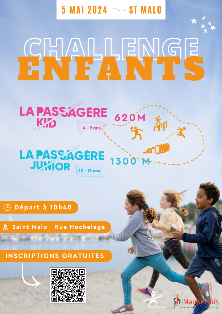 C'est la grande nouveauté de cette 23ème édition ! Une challenge dédié aux enfants en attendant l'arrivée des grands. Dès 4 ans, à partir de 10h, nous aurons le plaisir de les accueillir au niveau de la zone d'arrivée, sur le parking de l'usine TIMAC AGRO France du Quai Intérieur, rue Hochelaga et au Centre Mondial de l'Innovation Groupe Roullier.