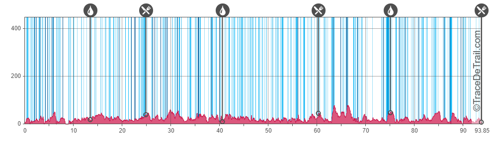 Pour le remplissage des poches à eau ou gourdes, celui se fera par les coureurs eux-mêmes sur les ravitaillements complets de Langrolay sur Rance ( Km24) et de la Ville Es Nonais (km59) uniquement sur le réseau d'eau potable de la Ville via un système de distribution spécifique et indiqué aux coureurs sur place. Consigne donnée aux bénévoles de ne pas remplir les poches à eau ou gourdes sur ces deux ravitaillements.